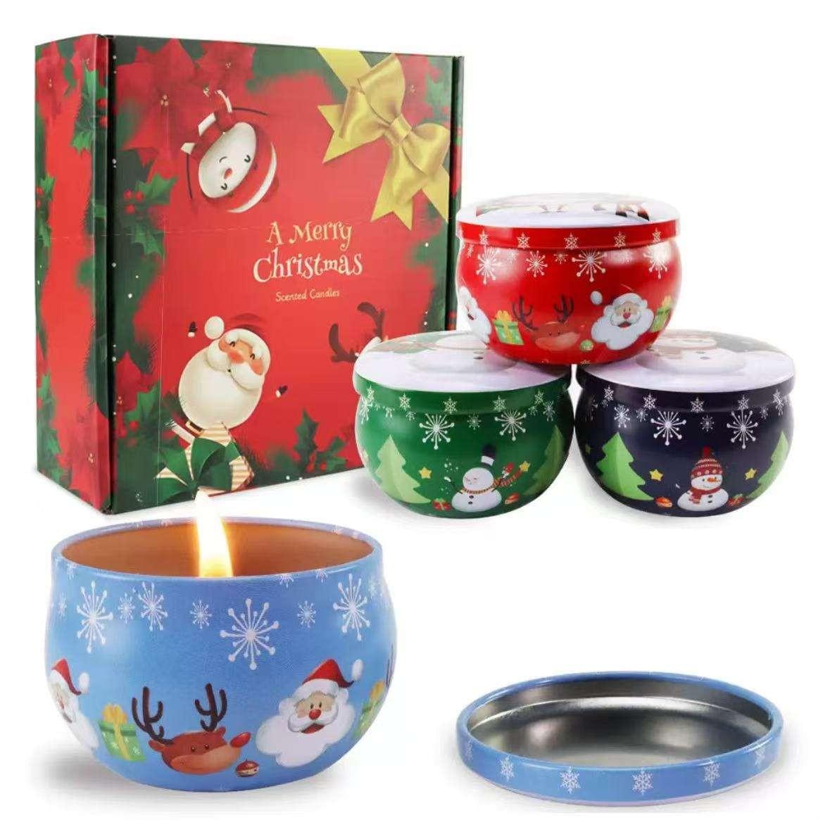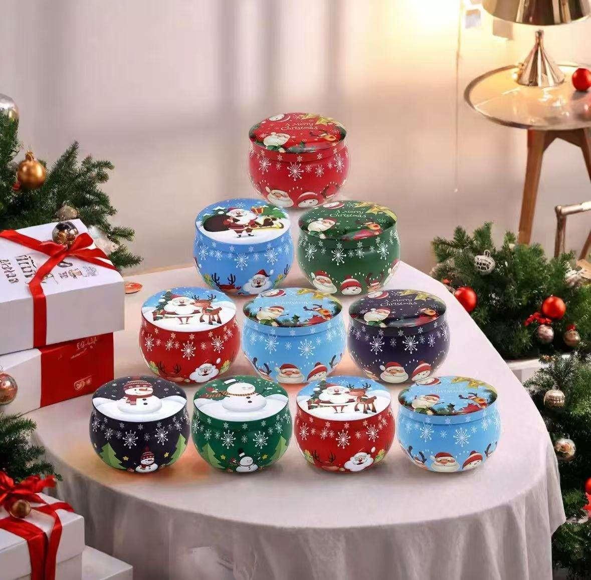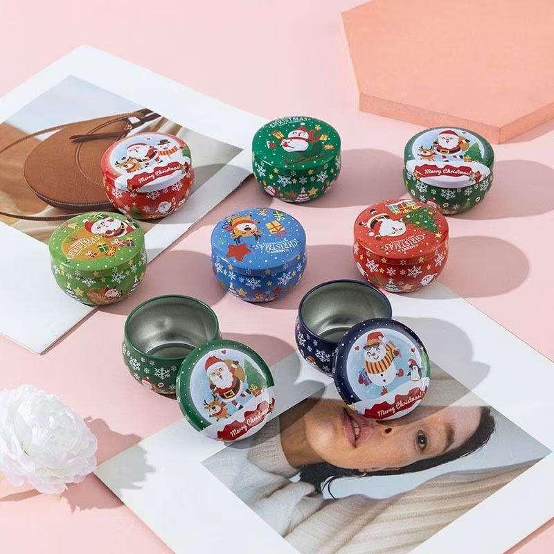 Christmas Candle Jar Tin Can Candle Storage Container, Metal Candle Jar Round Nesting