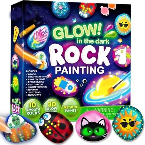 Rock Painting Kit- Bright in the Dark Rock Kit, Arts and Crafts for Kids Ages